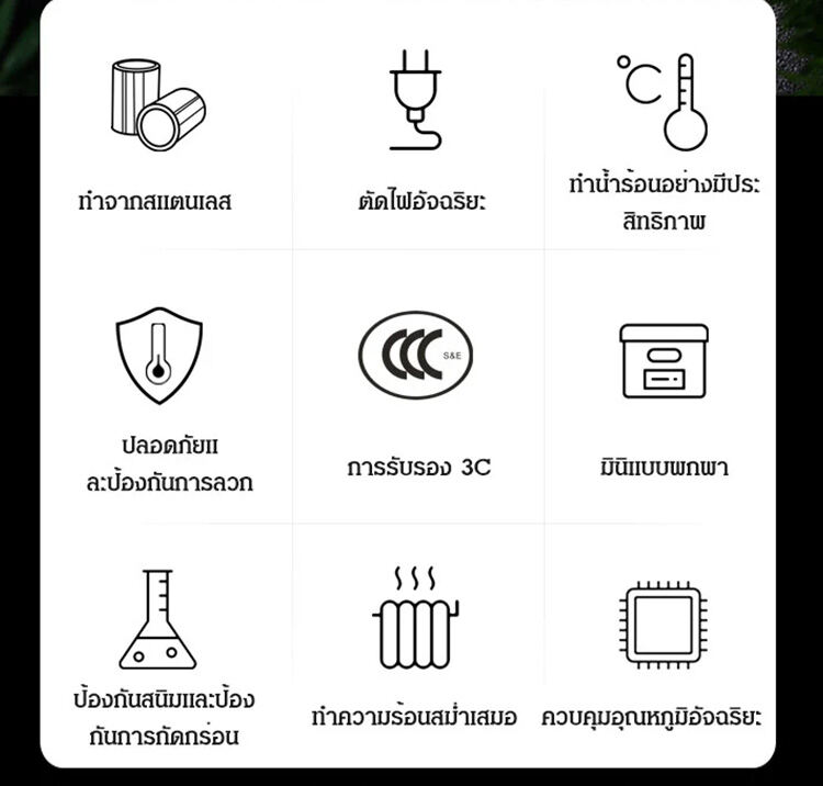 เครื่องแท่งทำน้ำร้อนไฟฟ้า ควบคุมอุณหภูมิ ปิดเครื่องอัตโนมัติ